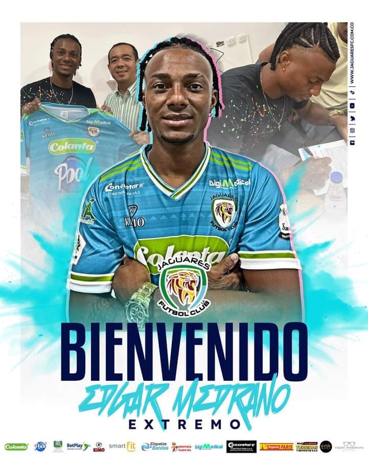- Edgar Medrano, extremo de 28 años, nacido en Cartagena, de buen pasado en CD Águila de El Salvador, donde jugó 13 partidos e hizo 3 goles, el jugador fue el mejor de la pretemporada con Jaguares, ha jugado dos partidos y lleva un gol.